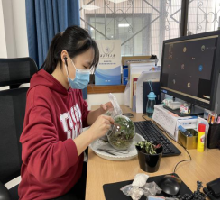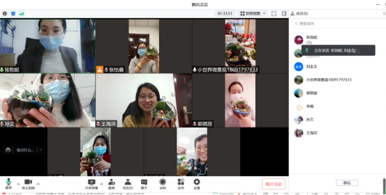一花一世界,一草一天堂,视觉与颜色的完美融合,创意与制作间收获欢乐。色情网站 工会邀请了专业老师为大家线上讲解了操作步骤,在老师的远程帮助下,按步骤将绿植、多肉、砂石等物品一一放入到容器内,不断调整,最后定格成作品。