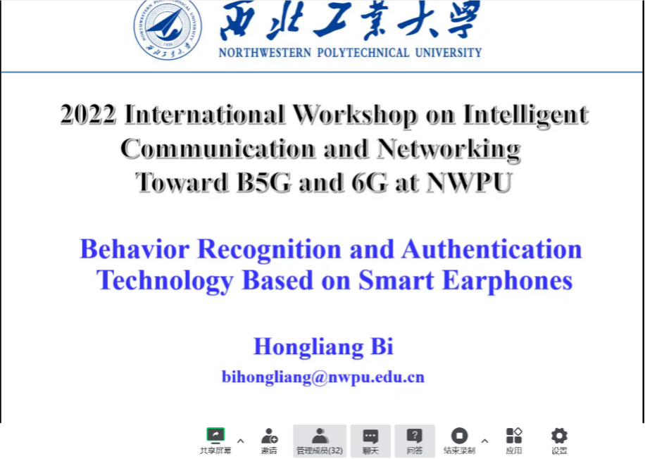此外,我院张尚伟副教授以RSS Threshold Optimization for D2D-Aided HTC/MTC in Ultra-Dense NOMA System为主题、王佳黛副教授以Software-Defined Networking: Attacks and Countermeasures为主题、荀毅杰副教授以Side Channel Analysis: A New Perspective for Vehicle Intrusion Detection System为主题、助理教授毕红亮老师以Behavior Recognition and Authentication Technology Based on Smart Earphones为主题分别作了学术报告。我院还邀请付强等4名博士研究生围绕智能反射板、NOMA、5G切片安全、软件定义网络等技术做了相关报告,与会专家围绕相关主题,同我院师生进行了交流和讨论,并对未来的科学研究工作提出了建设性的指导意见。