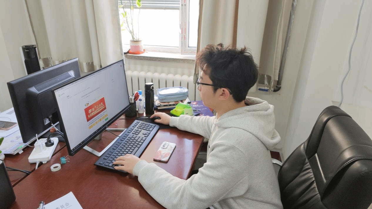 图为马君儒同学在共青团城关区委认真工作