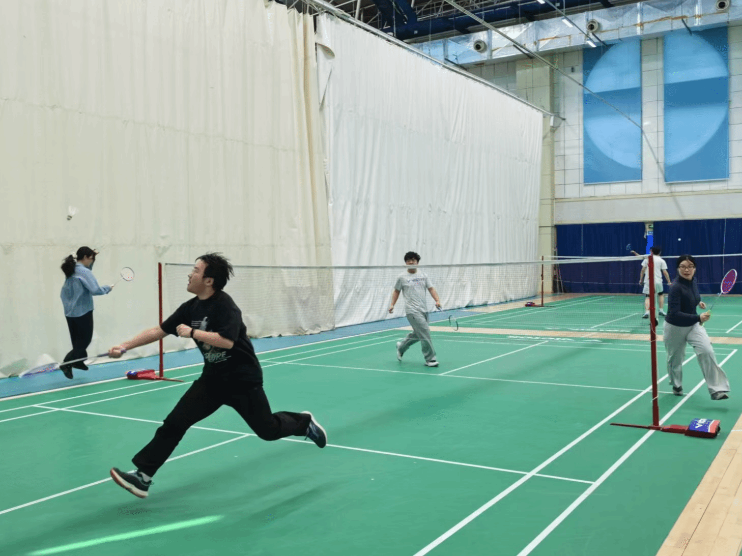 图为羽毛球接力赛进行中