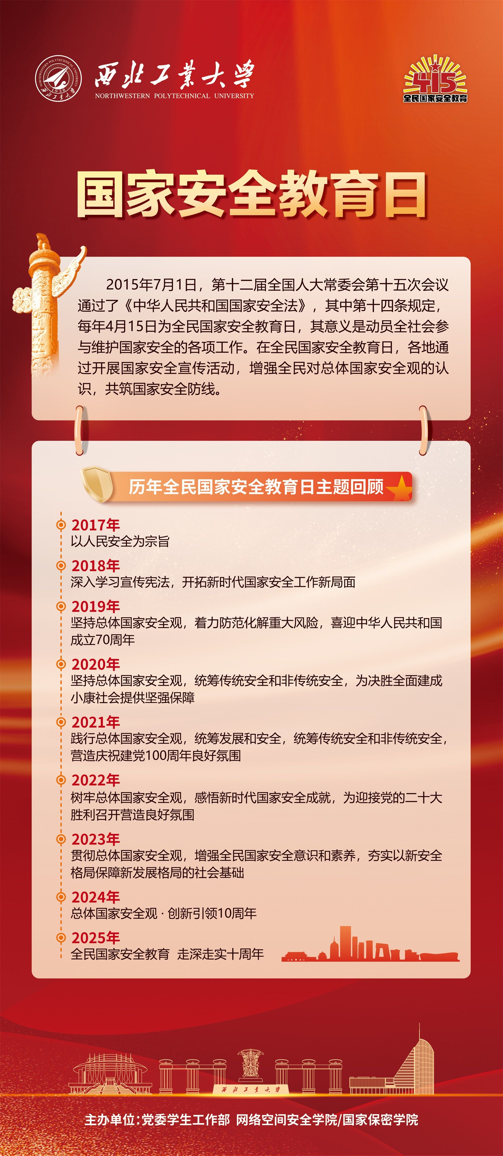 2025年4月15日是第十个全民国家安全教育日,今年的主题是“全民国家安全教育 走深走实十周年”。