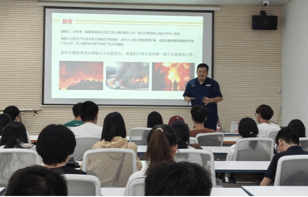 活动特邀学校保卫处消防科许磊老师进行消防安全知识讲座。许老师结合“预防为主、防消结合”的消防安全理念,通过剖析校园内发生的真实火灾案例,讲解了校园火灾隐患排查、夏季防火注意事项以及火场逃生自救技巧等内容。他强调,消防安全无小事,每位师生都应掌握基本的消防知识,做到防患于未然。