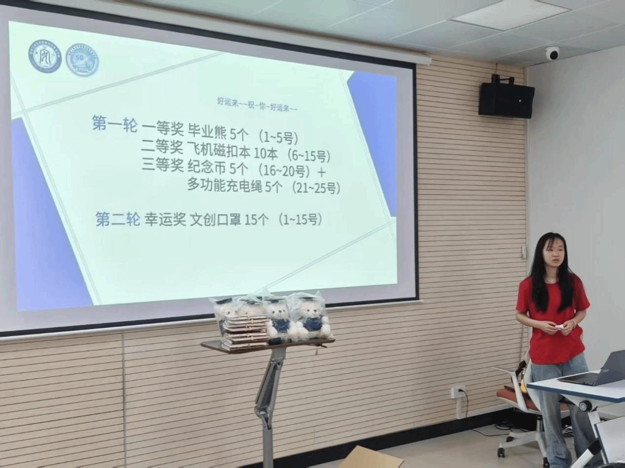 最后,班级委员会为同学们组织了紧张刺激的网络安全知识竞答环节,答对题目的同学将在接下来的抽奖活动中获得对应抽奖次数。有奖竞答以玩中学的方式鼓舞了同学们的学习积极性,现场气氛热烈,同学们竞答热情高涨。