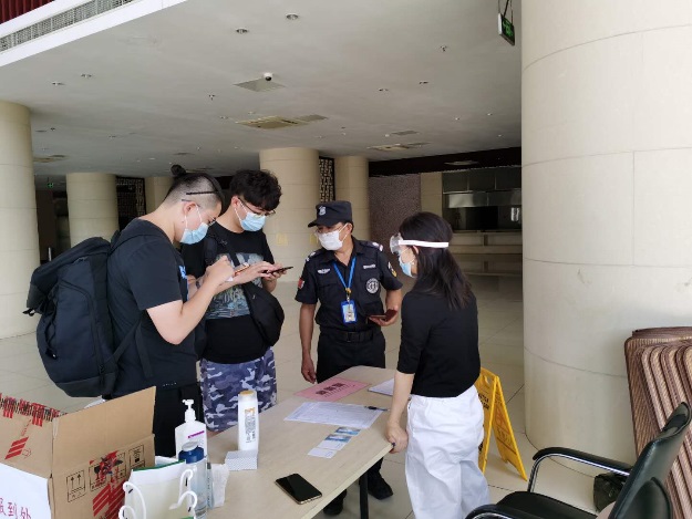 为了方便学生,从早8:00到晚上22:00在学生公寓楼大厅设报到点,学院领导、学院太仓办公室、本科生学生辅导员等工作人员全员在岗,等候同学们的到来。根据太仓防控疫情要求,入住人员需扫描苏康码,并配备公寓提供的入住二维码,测量体温正常,登记个人信心后方可正式入住公寓,杜绝了集体住宿可能存在的防控隐患。