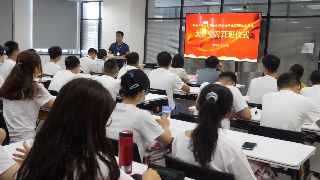 2018级本科生太仓实习开班仪式在长三角研究院隆重开幕。太仓市网信办副主任朱慧,团市委副书记陆菲,太仓校区管委会副主任兼长三角研究院副院长金秉乐,学院副书记王高祖,学院常务副院长张盛兵,副院长刘志强及2018级本科生参加了会议,大会由学院副书记王高祖主持。