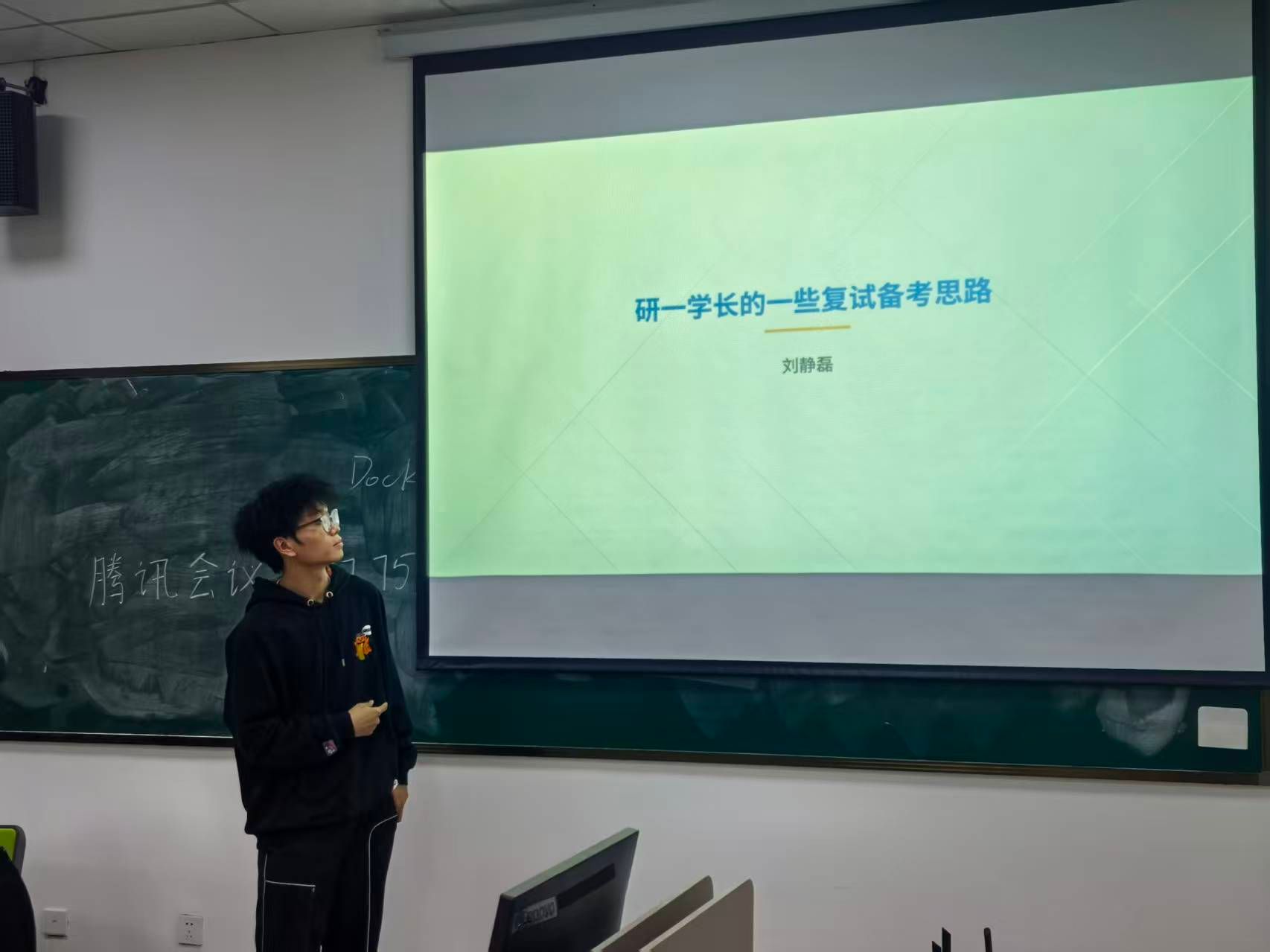 针对即将参加考研复试的同学,活动特邀我院研一优秀学长刘静磊作考研复试经验分享。他以“考研复试避坑指南”为主题,从导师选人逻辑、自我介绍与简历准备、专业课问答策略、英语面试技巧、面试礼仪与心理建设等六个方面展开讲解,内容详实、干货满满。
