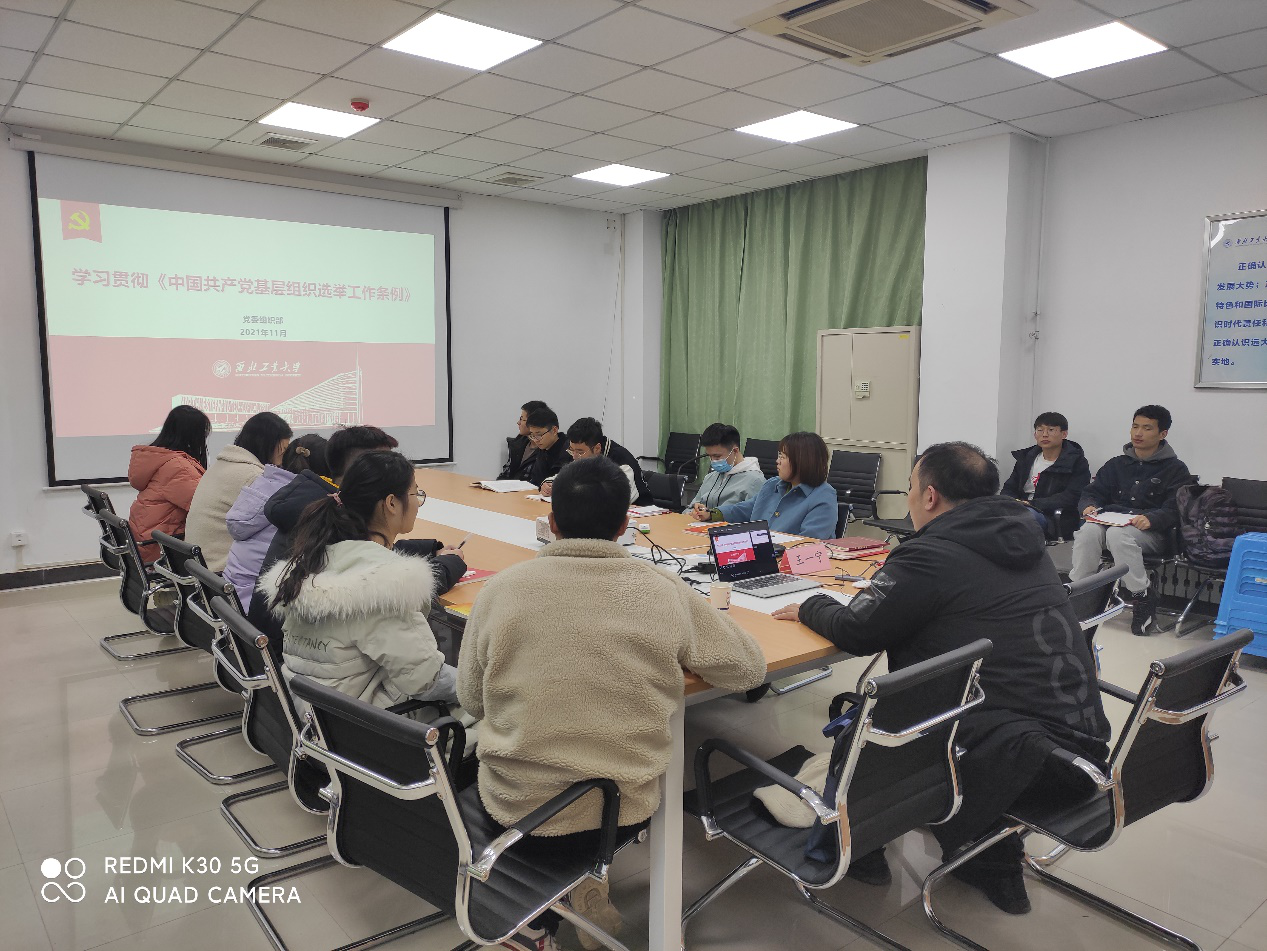 为深入学习贯彻习近平新时代中国特色社会主义思想和党的十九大、十九届六中全会精神,全面落实《中国共产党普通高等学校基层组织工作条例》,进一步提升党支部书记做好新形势下学院基层党建工作和思想政治工作的能力水平。11月22晚,学院邀请了学校组织部王一宁老师进行了“三会一课”和党支部记录规范化进行了培训。学院全体党支部书记、委员共计25人参加了培训。