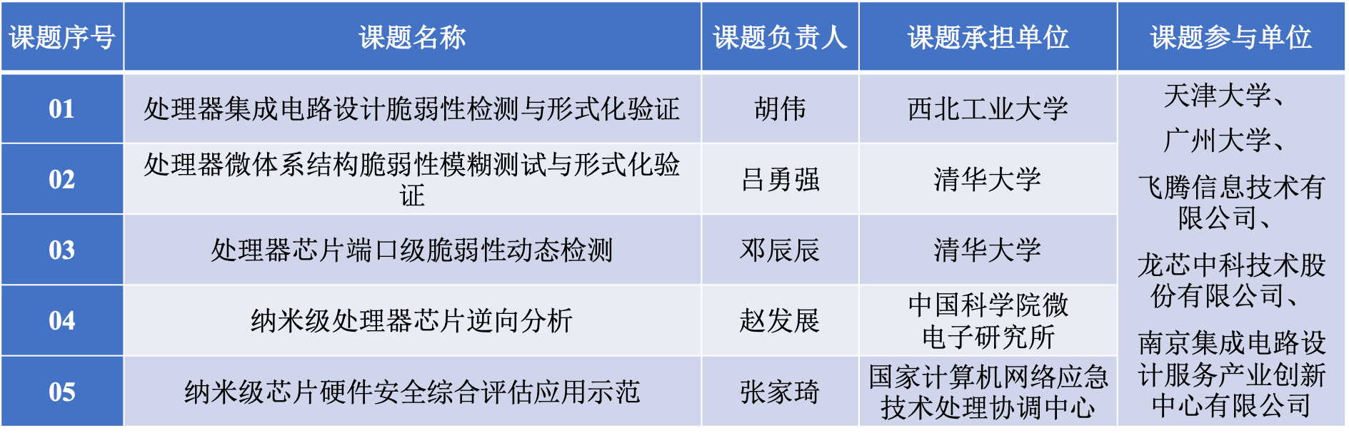 、中国科学院微电子研究所、天津大学和广州大学等本领域优势团队以及飞腾、龙芯、南创等国产处理器和EDA工具方面的领军企业联合承担。