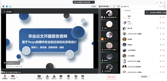 面向学院所有参加毕业设计(论文)的学生在线开展开题预答辩工作。本次预答辩分为6个小组,共18名教师、66名学生参与。