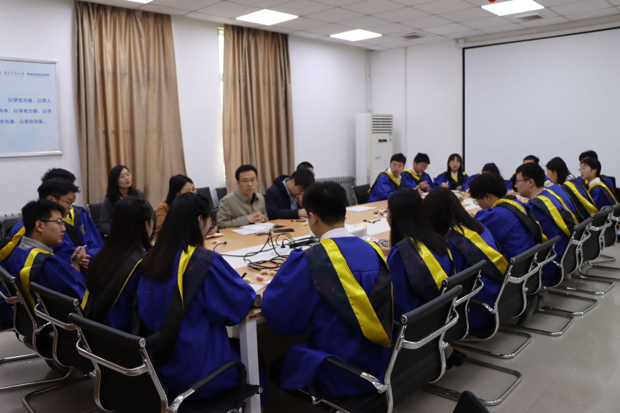 组织召开了2023届毕业研究生代表座谈会。学院常委副院长张盛兵、党总支书记王震、机关党支部委员、辅导员以及毕业研究生代表参加了本次座谈会,会议由学院党总支副书记禹亮主持。