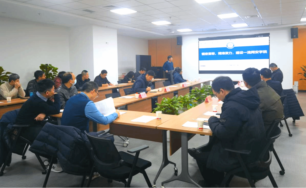的建设指标和要求,尤其对服务国家网安事业、网安人才评价、漏洞挖掘等网安领域重要指标工作进行了部署安排。他指出,学院要锚定学校“127”发展目标,精准施策,凝心聚力,铆足力量,全力建设国家一流网络安全学院。他强调全体教职工都要动起来,人人有目标,人人扛指标,主动担当作为,共同推动学院目标任务完成。