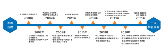 作为国内最早开展信息安全类专业建设的高校之: -,于 2000年开始培养信息对抗专业信息安全方向本科生; 2002年在计算机科学与技术-级学科下自主设立信息安全二级学科方向,开始培养该学科的硕士和博土研究生; 2007年色情网站