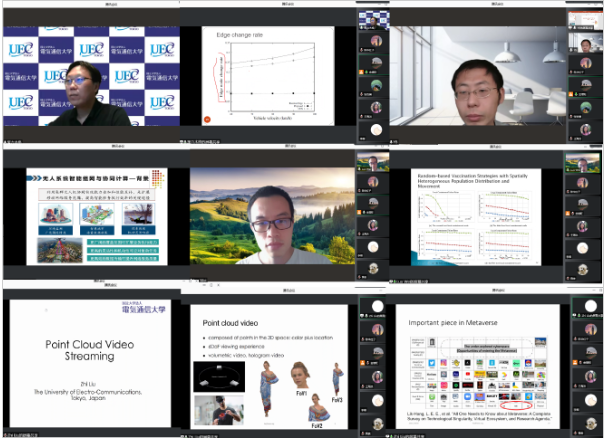 The sub-forum in the afternoon washostbyWang zhen,assistant dean of the college.WuCelimuge, associate professor atUEC (The University of Electro-Communications in Japan) presented the topic ofEfficient Networking for FederatedLearning, Bo yang,postdoctoral researcher at the University of Toronto, Canada,presented the topic ofNetworking and Collaborative Computing for unmanned systems. TheInfectious Disease Transmission and Control Using COVID-19and Influenza as examplespresentedby Luowei, theassistant professor at the National University of Singapore.Liu Zhi,anassociate professor ofUEC, delivered academic reports on the topic of Point Cloud video Streaming respectively,discussed and communicated with participants on the core concepts of federal learning.