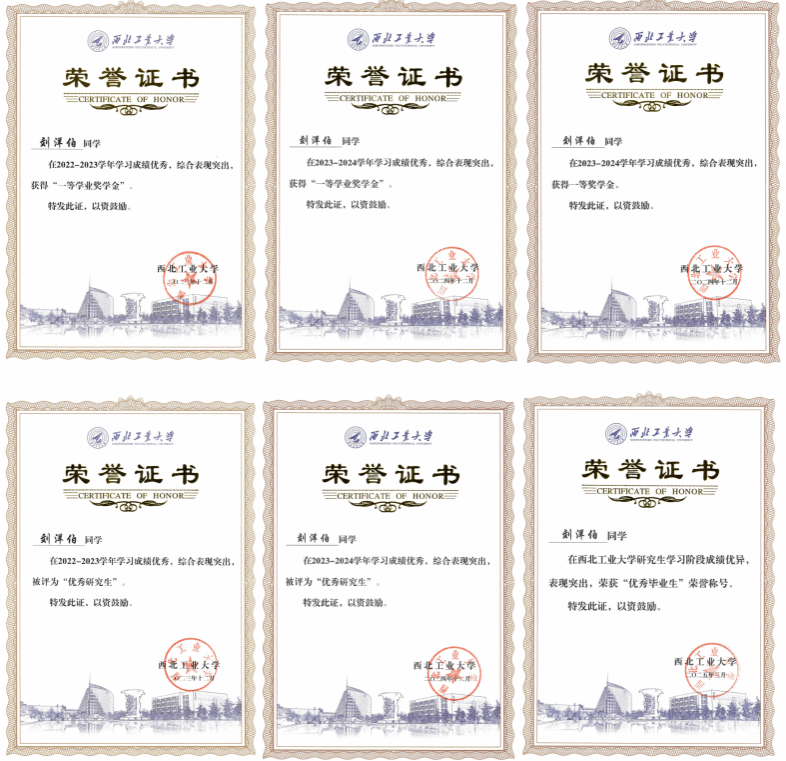 在攻读硕士期间,刘洋伯积极践行西工大铸剑精神,其通过在WOCC 2023、IEEE WCNC 2024等国际会议上公开发表科研成果、协助学院承办IEEE HPSR 2022和未来网络与智能通信研讨会和担任IEEE HPSR 2022、IEEE ICC 2023 Workshop及IEEE ICC 2024 Workshop等的TPC Member以弘扬西工大的国际学术声誉。此外,其也积极承担本科生指导任务,所指导的团队获国家级“大创”良好结题,并在ICCSN 2023上公开发表论文1篇、申请国家发明专利2项、授权软件著作权1项。