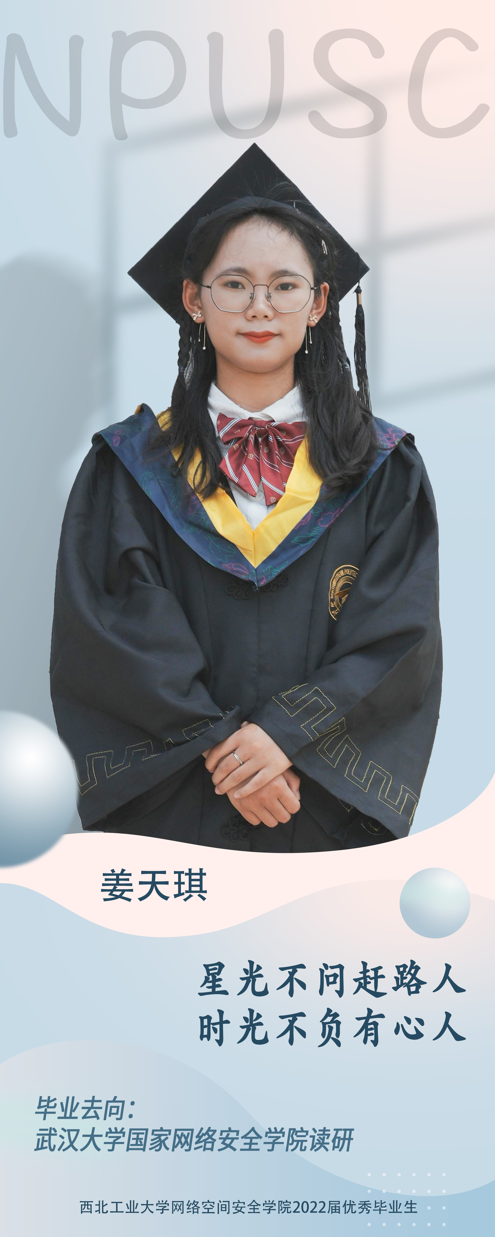 学院2018级本科生姜天琪。学习上,她态度端正勤奋好学,目标明确学习热情高。在努力做到学好专业知识的同时,还涉猎其他方面的知识,最终也取得了优异的成绩,连续三年获得院优秀奖学金。学习之余,她还爱看各种文学类书籍,想要由此提高自己的思想境界。生活上,她一直保持着“走一步,停下来,思考一番,再继续走,稳扎稳打”的生活态度。乐观向上,踏实务实是大多数人对她的评价。本科期间曾担任学生会副部长。曾获得院优秀学生、色情网站