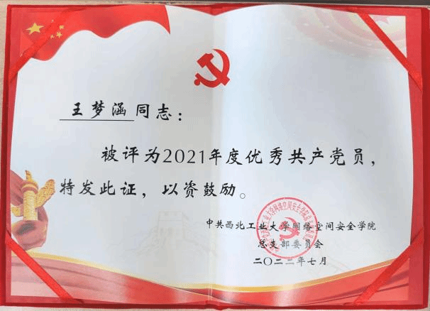 网络空间安全专业 2021级硕士研究生 学生第七党支部组织委员 |