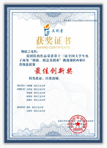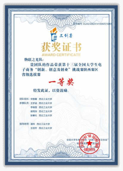 2023年 第十三届全国大学生电子商务“创新、创意及创业”挑战赛·陕西省“轩辕杯”选拔赛省一等奖、最佳创新奖