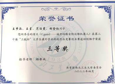 2022年 第二十届“三航杯”大学生课外学术科技作品竞赛三等奖