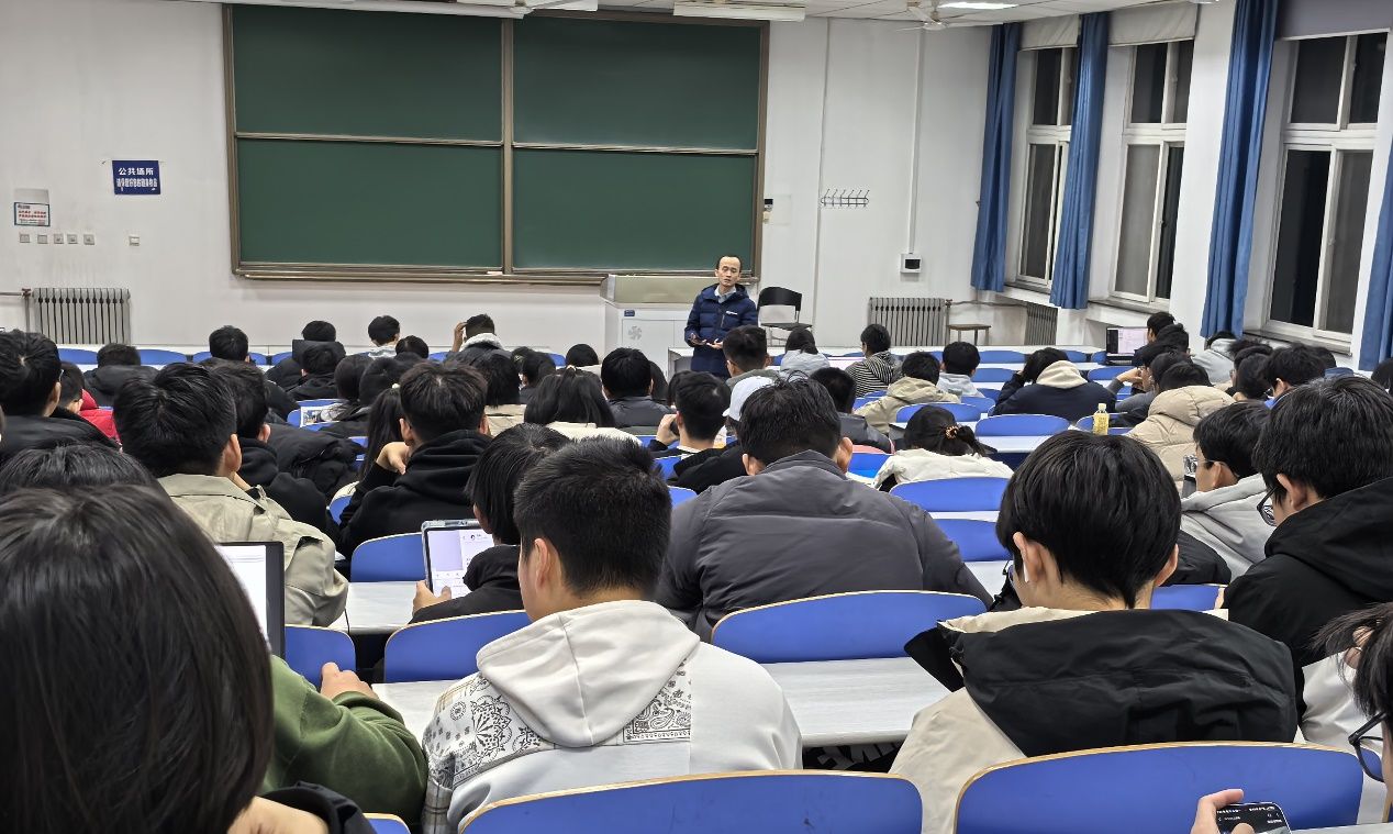2024级本科生年级大会暨期末复习动员会在教东D1-301举行,2022级优秀本科生、吴亚军一等奖学金获得者封阳阳、2024级全体本科生参加,大会由年级辅导员戚明平主持。