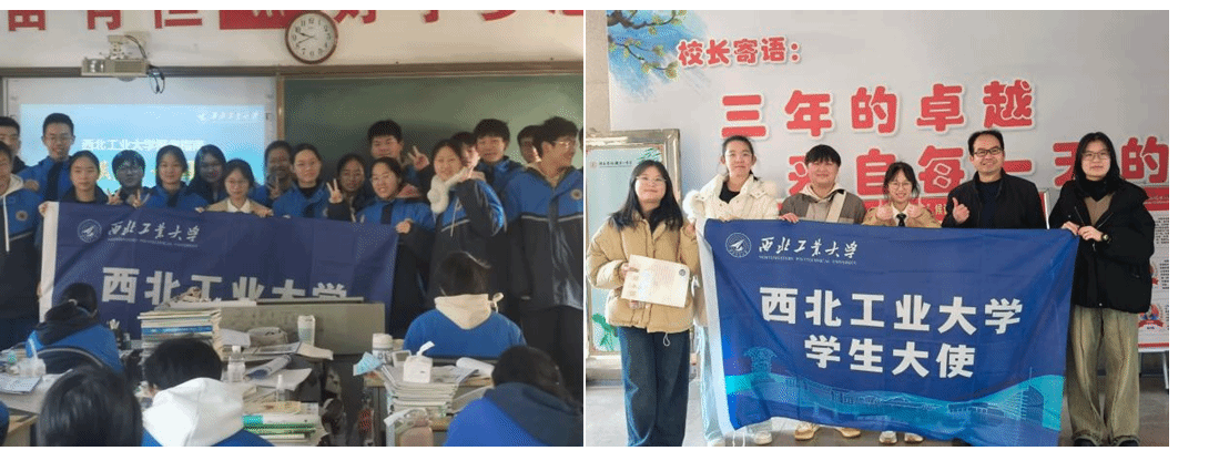 2023级本科生薛沛元同学、2024级易丁琪同学、2024级陈玟璇同学参与“学生大使”寒假社会实践,他们结合自身专业,向大家介绍了学校的特色学科与校园活动,从杰出校友、校园美景、校园美食、学校文化、个人学习生活、专业特色和科研实力等角度介绍了西工大,并与现场同学积极互动,发放了精美的文创产品,激励学弟学妹们努力学习。陈玟璇同学说到:“沿着共同校友师昌绪先生的足迹,感受到了他带给工大学子的奉己为国的内心责任感。如今我已如愿成为西工大的学子,经过宣讲更是深深体会到西工大的优秀与自豪。”