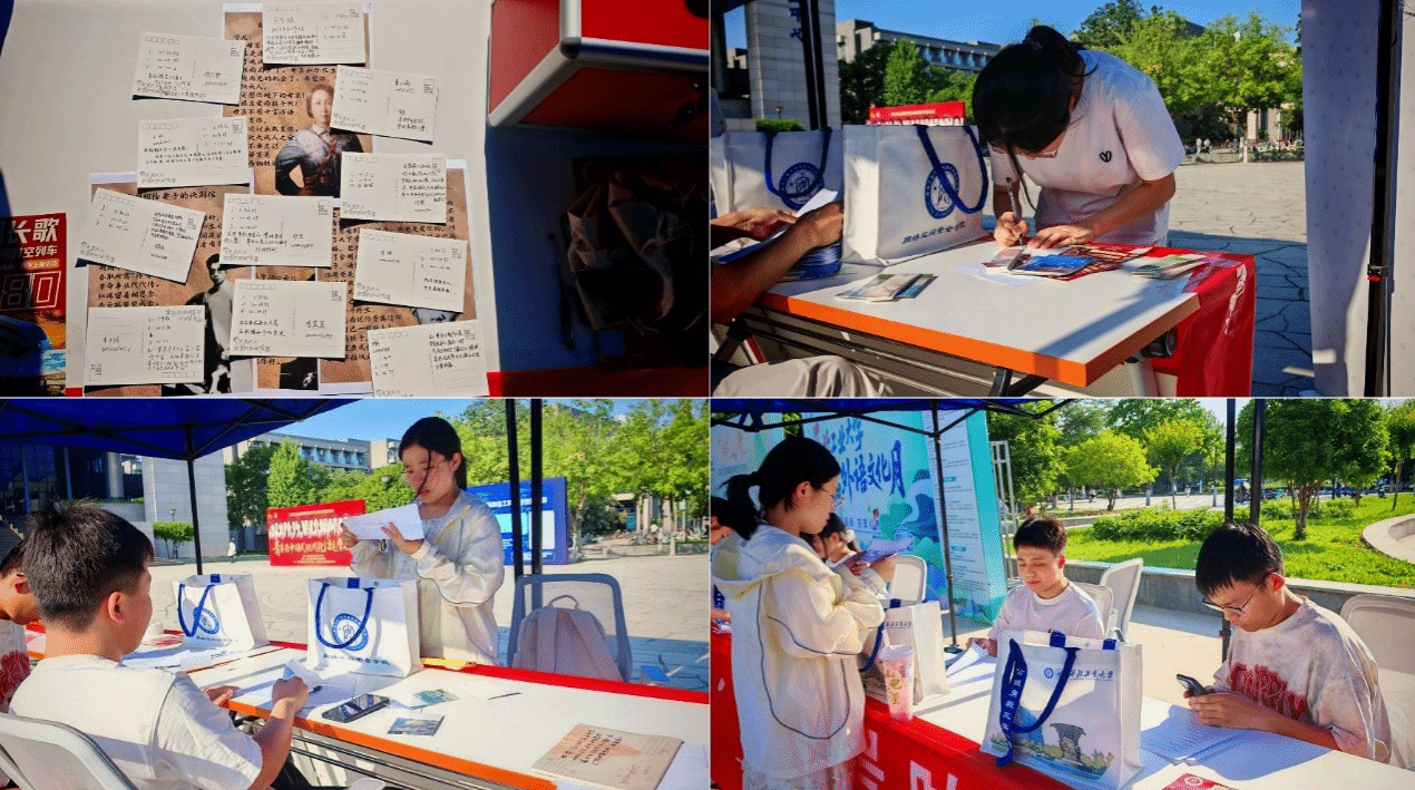 委员会承办的《烽烟长歌·1945号时空列车》纪念抗日战争胜利80周年主题活动在翱翔学生中心广场圆满结束。本次活动通过精心设计的沉浸式关卡、饱含深情的叙事文字,以及精美的限定文创纪念品,吸引了众多同学驻足参与。活动现场,同学们纷纷执笔写下情真意切的寄语,以书信传情,致敬革命先烈,在校园内掀起了一股学习革命历史、传承先烈精神的热潮。