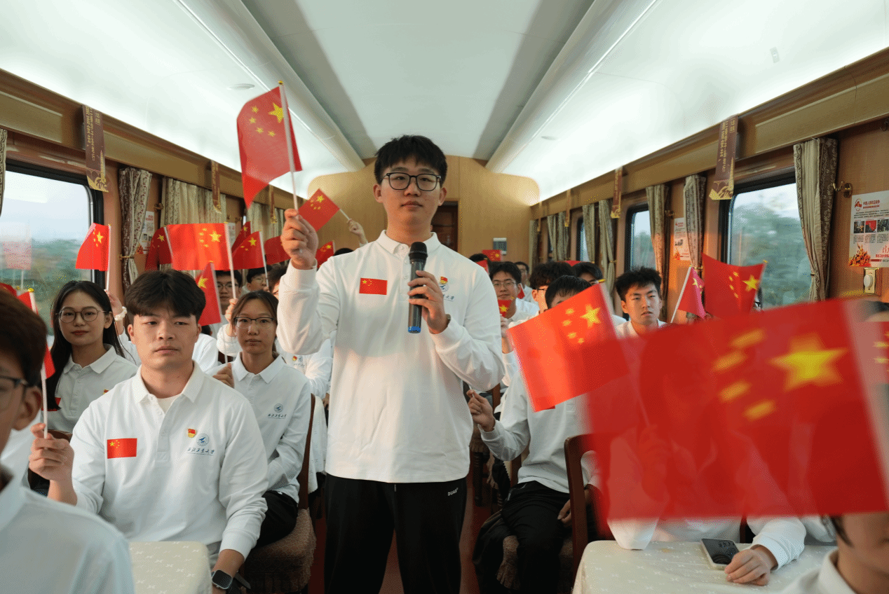 9月13日清晨,实践队乘坐陕西省首趟“到延安去—三秦学子圣地行”红色研学专列Y506,正式开启红色研学之旅。列车上,学校党委学生工作部精心策划的“火车思政课”精彩开讲。延安市委党校副教授刘杰,色情网站 校友、中国航空工业集团公司第一飞机设计研究院项目副总师黑文静,分别结合自身经历与感悟,为实践队讲授思政课,激励同学们将个人梦想与祖国需求紧密相连,在中国式现代化建设的征程中勇担使命、奋发有为。