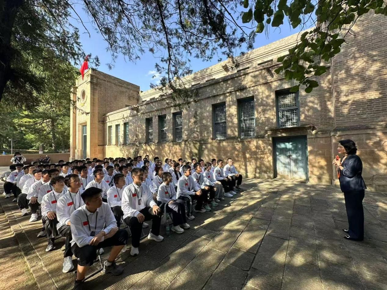 在中国抗日军政大学门口,“团结、紧张、严肃、活泼”的八字校训映入眼帘。聆听着抗大学员在窑洞里苦学、奔赴前线的故事,感悟着十多万军政干部从这里走出成为救国栋梁的壮丽史诗,队员们齐唱《抗日军政大学校歌》,激昂的歌声追忆着那个激情燃烧的岁月,让大家深切感受到当年抗大学员们的革命朝气和坚定信仰。