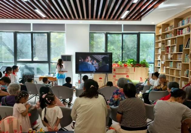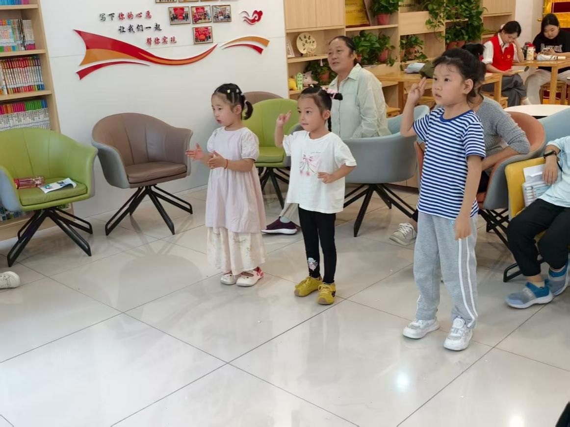 志愿者们耐心分解每一个动作,从“爱祖国、爱人民”到“鲜艳的红领巾飘扬在前胸”,每一词句都配合着精准的手语动作。孩子们学得格外认真,在反复练习中,一双双小手渐渐舞动得整齐划一。铿锵有力的歌词配合优美的手语,爱国爱党的情怀在孩子们心中悄然生根发芽。