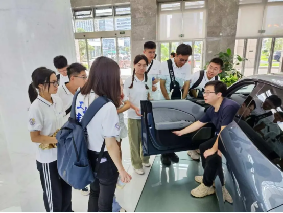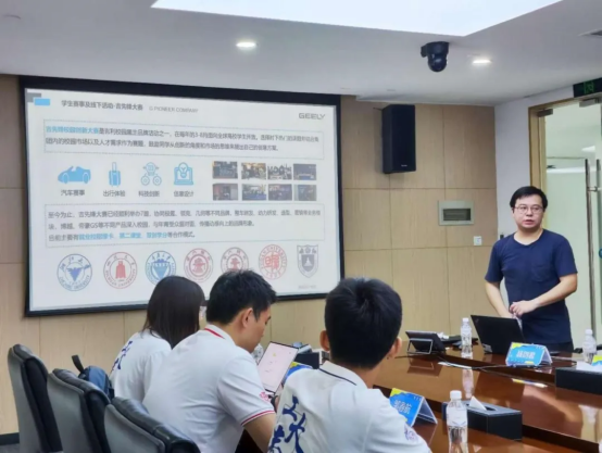 随后,招聘交付经理聂剑君与实践队员们开展座谈会。首先,聂经理介绍了吉利公司的发展历程并简要描述了其业务及技术特色。他强调,要扩大产业布局,“将专业的事交给专业的人来办”,同时,要加强多公司多业务联合,保证产品的全面性和竞争力。紧接着,聂经理向实践队员展示了集团的科技生态、品牌组合,以及其全球化的产品研发设计。并基于此引出了集团的人才理念--人才森林:有高有低,有大有小,才能保持充足的强大生命力和功能。同时鼓励实践队员们可以积极参与实习学习,“作为一家大型企业,我们能提供除个别特殊专业外几乎所有的对口岗位”,希望同时保持高校合作以及高校共建,进行多项就业育人合作项目,也希望同学们能积极提升自己,踊跃参与集团的相关实践。