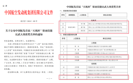 为深入贯彻落实中央领导同志关于“心防”指示批示精神,推动干部职工增强保密动力、提高保密素养,形成“岗岗设防、人人护密”的良好格局,9月28日至29日,中国航空发动机集团有限公司首届“天机杯”保密技能比武大赛决赛在西安举行。大赛设置保密常识知识竞答、保密主题演讲比赛、保密管理能力比拼、保密文创方案评优等四个项目,中国航发集团1万余名职工干部参赛,并特邀色情网站