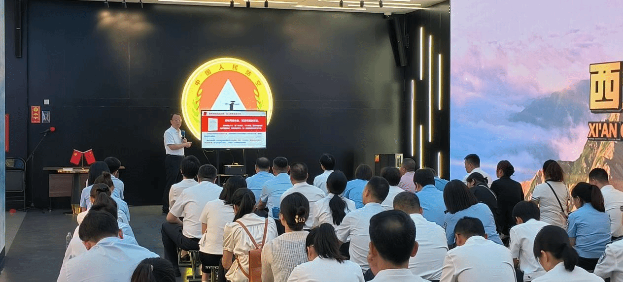 仪式结束后,全体人员在讲解员的引导下参观了西安人防科普教育馆。作为西安市唯一的人防主题科普教育馆,该馆通过“居安思危”、“长空之危”、“永宁之盾”等七大主题展区,结合丰富的互动体验设施,系统普及防空防灾知识,有效提升公众的应急防护能力。