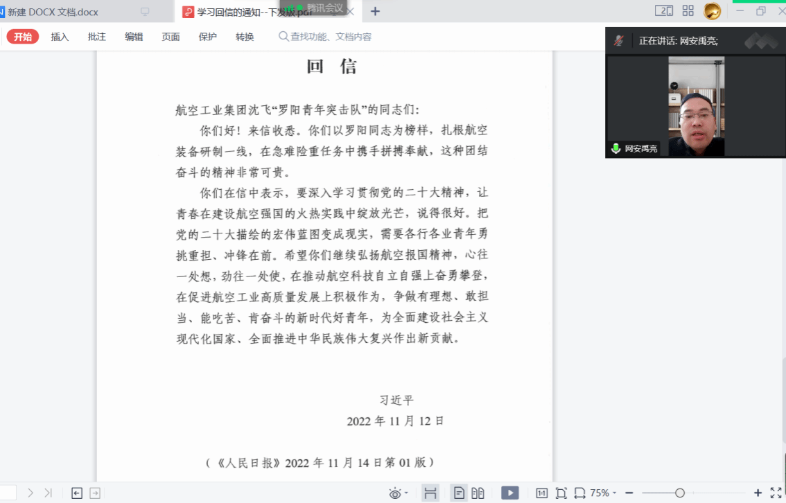 报告结束后,禹亮副书记带领党员师生学习了习近平总书记给中国航空工业集团沈飞“罗阳青年突击队”的队员们回信精神,指出航空报国精神是中国共产党精神谱系的重要组成部分,希望全院师生把航空报国精神与网络强国战略思想相融,在建设一流示范色情网站 、推进色情网站 的各项工作中做出贡献。学生代表吕佳文同学分享学习的心得体会,他表示沈飞“罗阳青年突击队”的队员们的进取精神值得所有为实现中华民族伟大复兴而努力的中华儿女学习,作为一名新时代西工大青年、一名网安学子,将始终牢记习近平总书记的殷切嘱托,努力提升思想水平,学习专业知识技能,为维护国家网络空间安全,实现国家富强、民族复兴贡献力量,让青春在奋斗中绽放绚丽之花。