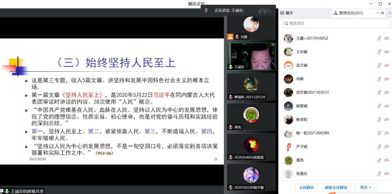 邀请中共陕西省委党校科社部原主任王诚安教授为学院师生讲授“学习《习近平谈治国理政》第四卷的认识和体会”党课。此次党课由学院党总支副书记禹亮主持,学院领导班子、党支部书记、师生党员、发展对象、入党积极分子二百余人参加党课,根据疫情防控要求,党课采取线上形式召开。