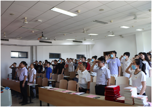 会议伊始,学院党总支书记王震带领全体党员重温入党誓词。站在党旗下,在场的每个共产党员都心潮澎湃,热血沸腾!重温入党誓词仪式进一步激励党员以自身的实际行动积极践行誓词,以饱满的精神发挥共产党员的先锋模范作用,体现共产党员的先进性,永葆共产党员的政治本色。学院党总支副书记禹亮讲到,我们每一个党员都要永远记住这个神圣的时刻,激励自己终生践行入党宣誓,为党的事业奋斗终生。