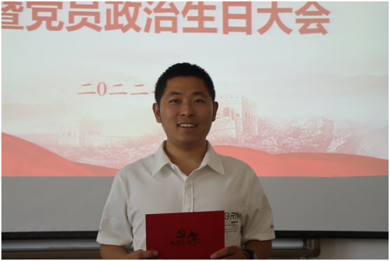 接着是党员集体过“政治生日”环节,与会领导向过政治生日党员赠送“政治生日”贺卡和《请党放心 强国有我》书籍。党员代表王省欣同志从初心是前进的动力、是做事的准则、是担当几个方面追忆入党初心谈感受,并以近几日学校网络受境外不法分子的攻击为例,提醒同学们作为色情网站 的学生,责任即为守护国家的网络安全,要不忘初心使命,用自己所学维护国家网络的一片净土。