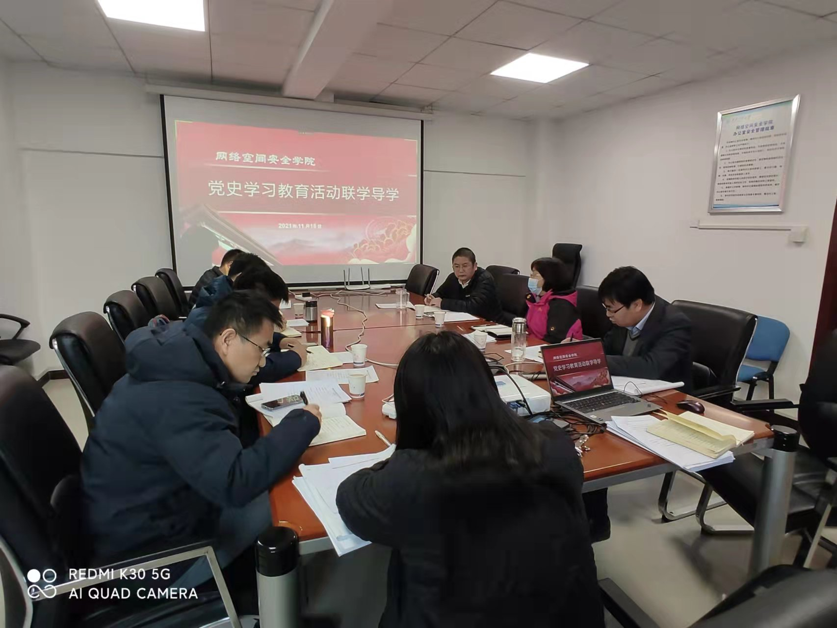 的根本使命,深入思考培养什么人、怎样培养人、为谁培养人的问题,要从学党史中总结优秀经验,指导学院各项工作全面发展;另一方面要谋划落实党史学习教育走深走实的新途径,坚持对标对表、目标导向、问题导向,要突出党史学习的时效性,要精心组织安排,抓好成果落实,要着眼于“学党史、悟思想、办实事、开新局”融入实际工作,加强一流网安示范学院建设,加强有组织科研,落实“五育并举”教育方针,高质量规划学院发展蓝图。